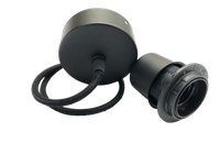 Czarne metalowe zawiesie z kablem w oplocie