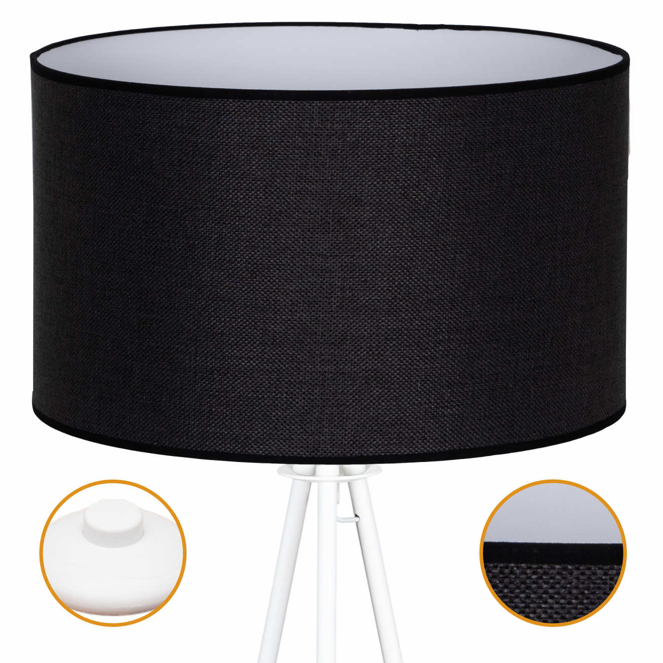 Lampa podłogowa Trigni biała z czarnym LNIANYM abażurem