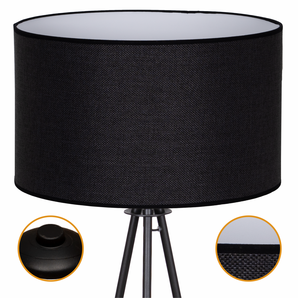 Lampa podłogowa Trigni czarna z czarnym LNIANYM abażurem