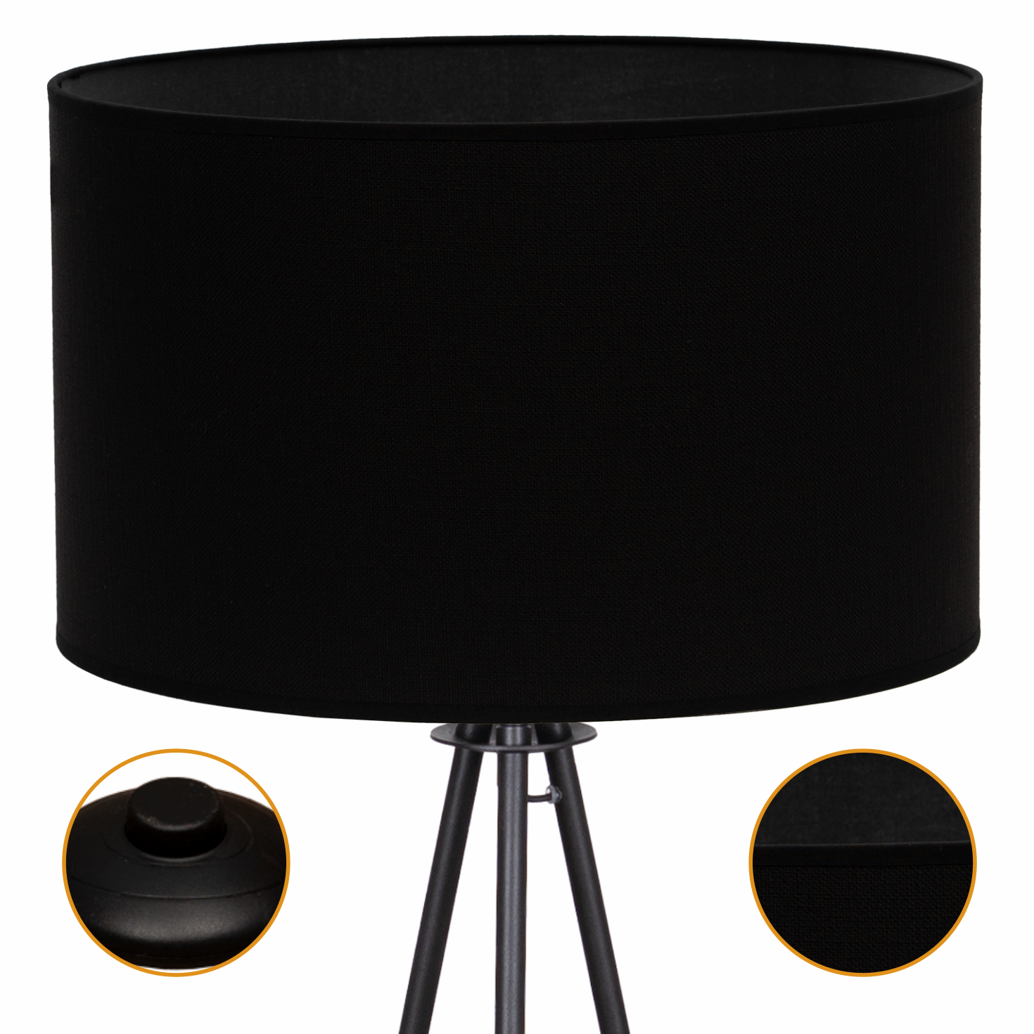 Lampa podłogowa Trigni czarna z czarnym VLORA abażurem