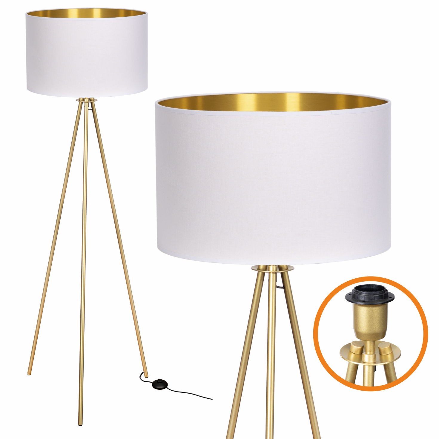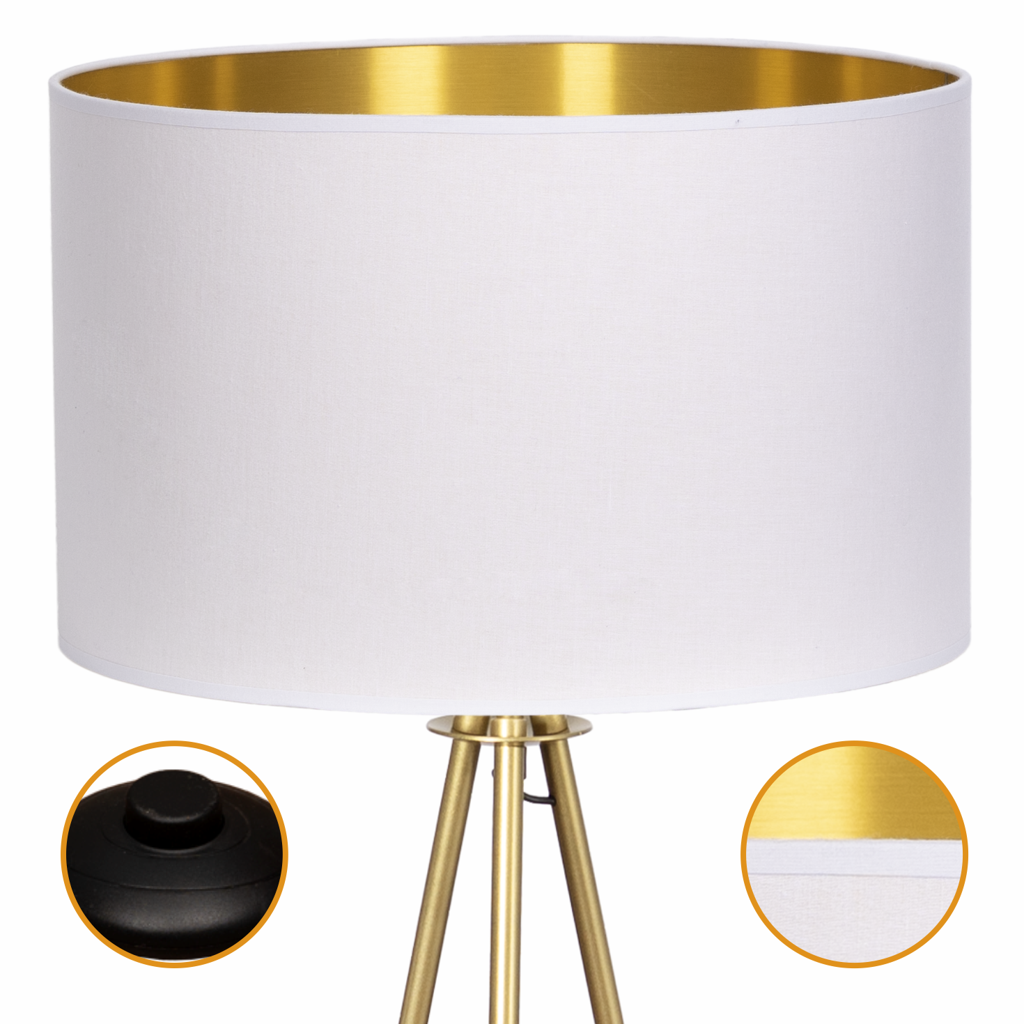 Lampa podłogowa Trigni złota mat z biało złotym abażurem