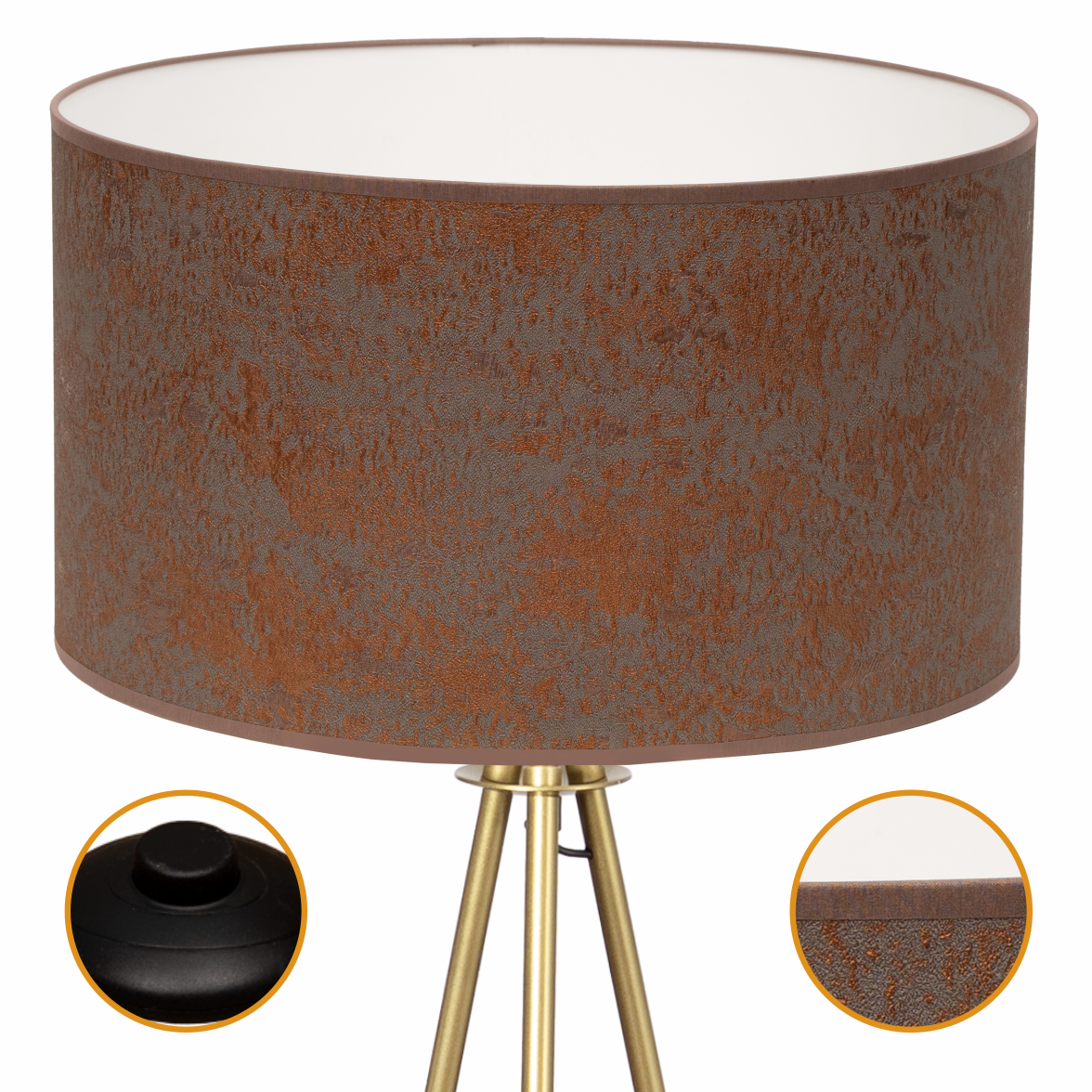 Lampa podłogowa Trigni złota mat z brązowym CONCRET abażurem