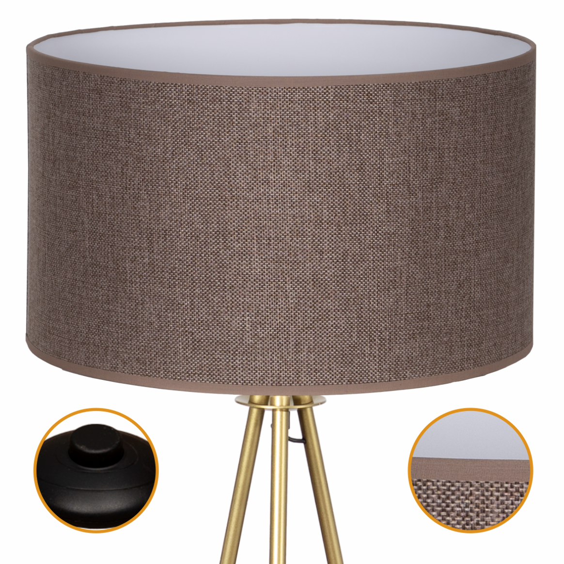 Lampa podłogowa Trigni złota mat z brązowym LNIANYM abażurem
