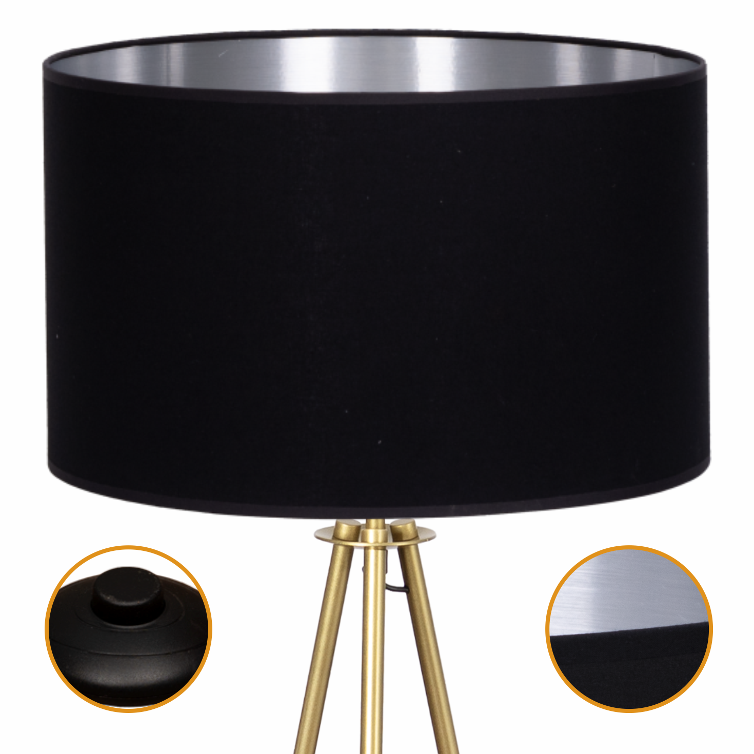 Lampa podłogowa Trigni złota mat z czarno srebrnym abażurem