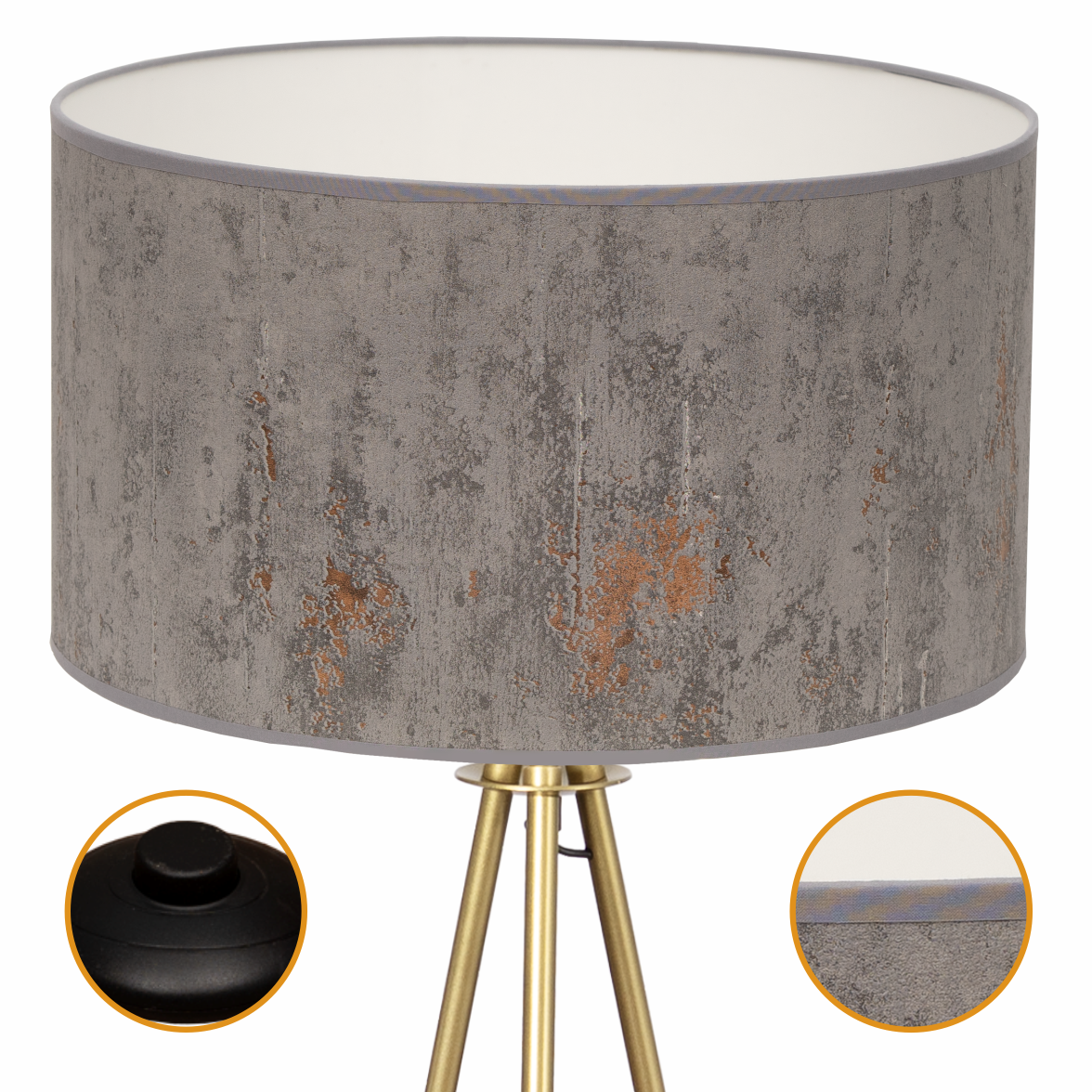 Lampa podłogowa Trigni złota mat z szarym CONCRET abażurem