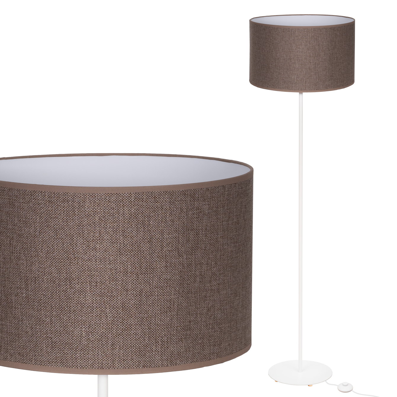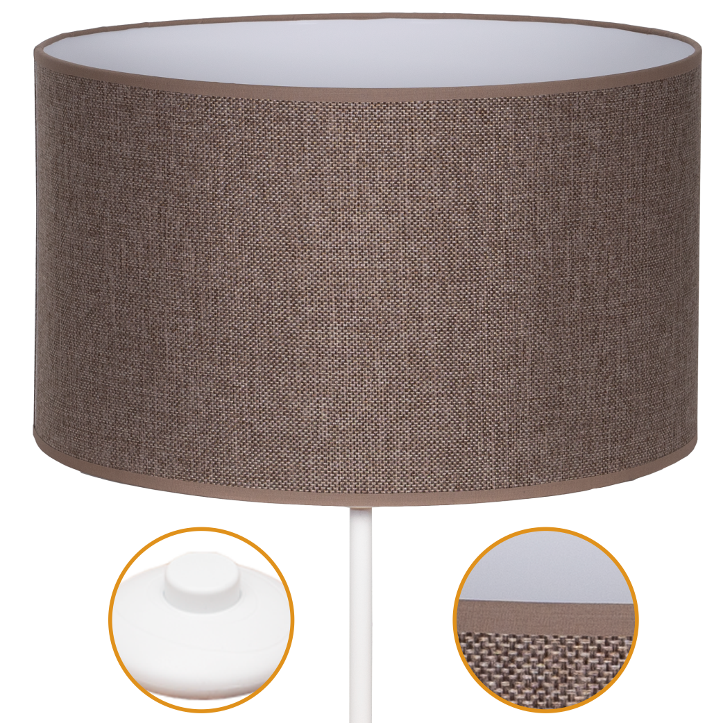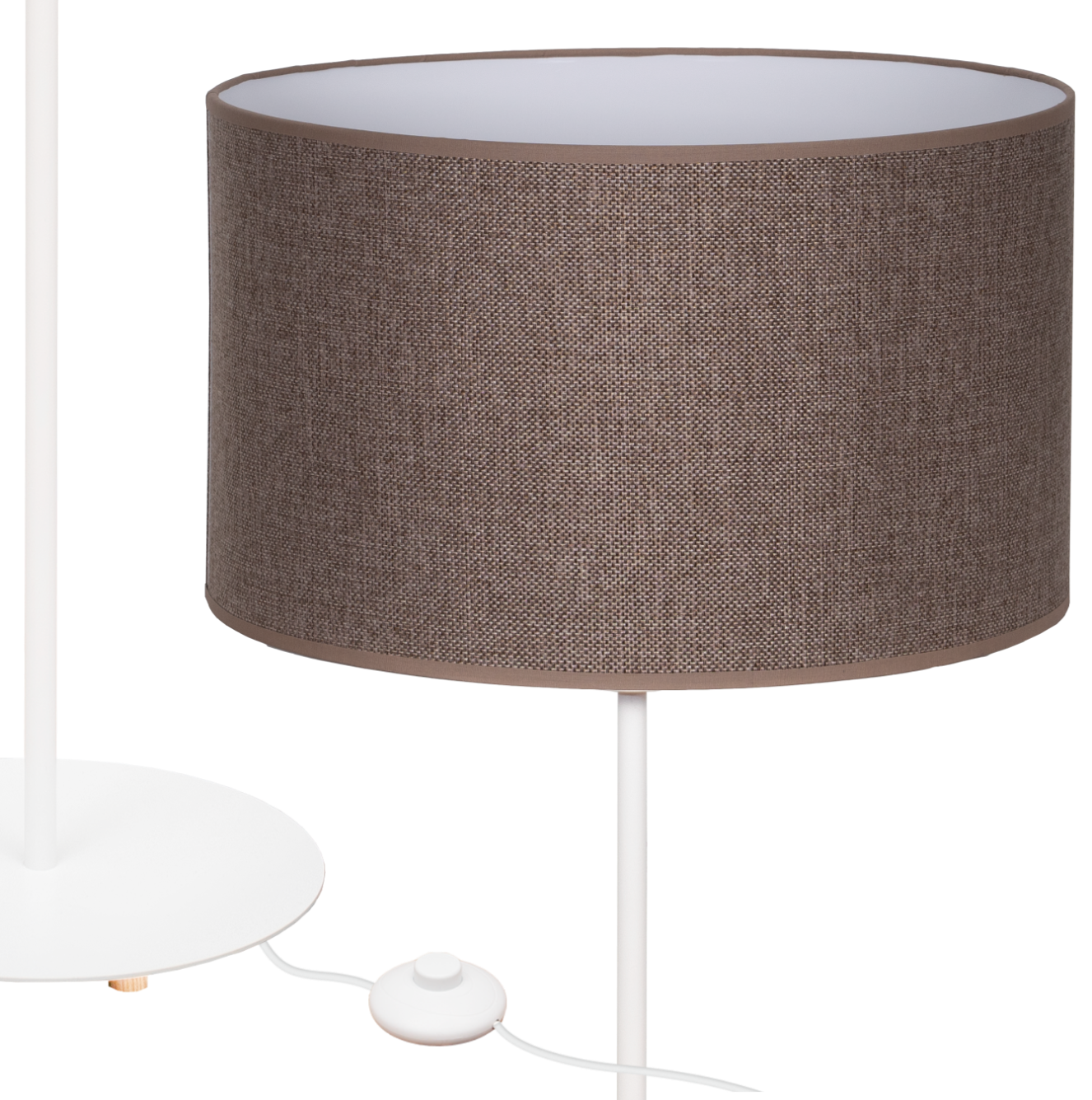 Lampa stojąca Magni Biała z Brązowym Lnianym abażurem